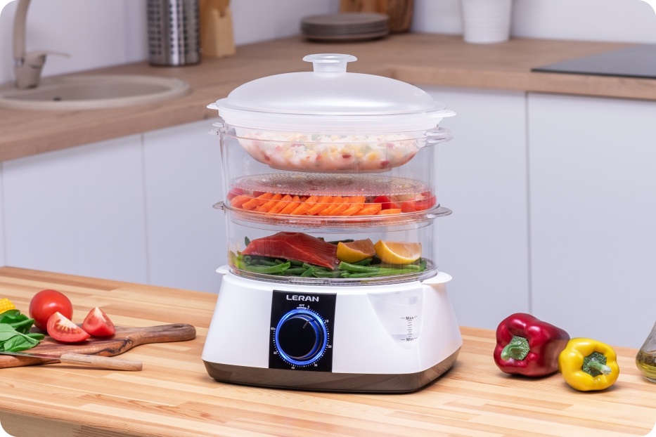 Начните готовить с пользой для фигуры и здоровья в пароварке LERAN FS-355. Она сохранит всю пользу витаминов и позволит проводить меньше времени на кухне.