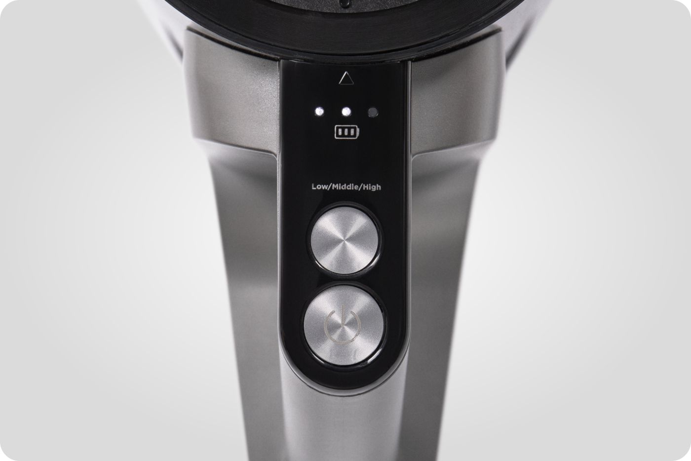 Беспроводной пылесос обладает 3 режимами работы: низкий, средний, высокий